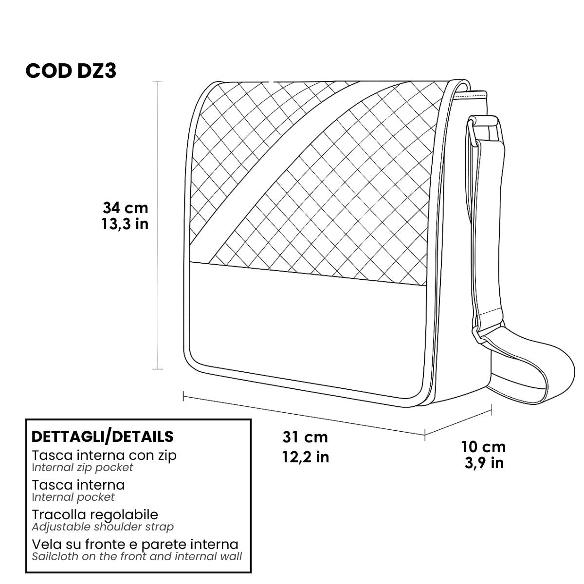 Tasca interna con zip, tasca interna, tracolla regolabile